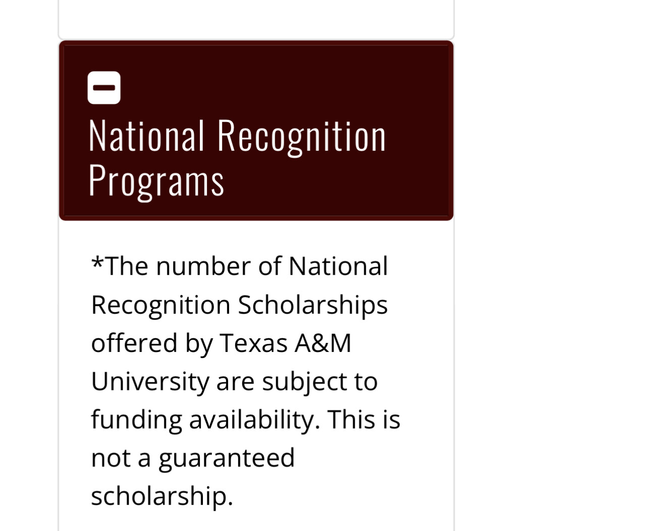 @AETX she was awarded PES (President’s Endowed), which is automatic for NM S/F, but only if spots are available for limited Commended. Commended have a chance-based on heavy leadership/awards/community involvement/academics ( but all based on how many NM S/F decided to attend A&M, and how many spots-if any- are left).