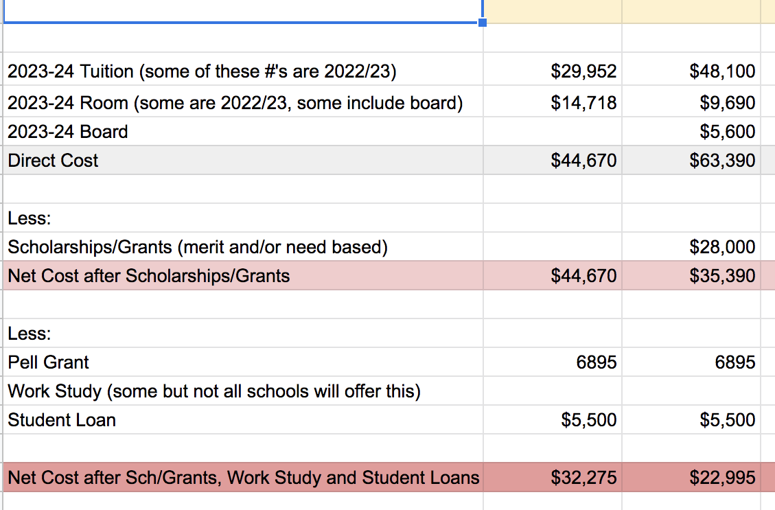If you were my kid, I’d say no to anything over $50k first. They’re just not worth that much more than the others. Then, it really depends on your parents finances and what they are willing to pay for. It looks like you have several out of state options in the 40k range. The only difference between those and your instate options is the experience. Are your parents willing to pay 10k to 20k more so you can have an out of state experience? Only they can answer that. We faced that question and did send our kids out of state but we had fully funded 529 accounts. I don’t think the education is going to be that different at any of those schools. I definitely wouldn’t take out loans to finance any of the more expensive ones. Looking at this list, I think UMass Lowell is probably your best option.
