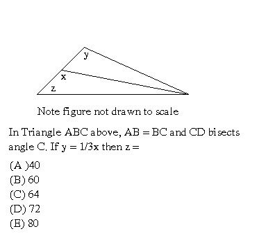 <p>On the other side of line CD, the angle equals 180-x, so one half of angle C = 180-y-(180-x) = 180-1/3x-180+x = 2/3x. The other half of angle C is also 2/3x (because CD bisects angle C). so z = 180-x-2/3 = 180-5/3. And since AB=BC, that means ABC is isosceles, so z = 2/3x *2 = 4/3x</p>
