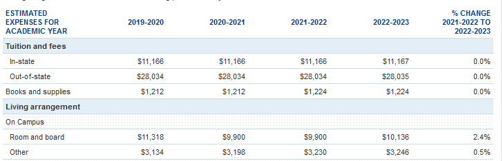 btw - one more - Arizona is $41000 tuition (they really went up) + $14400 for room and board.