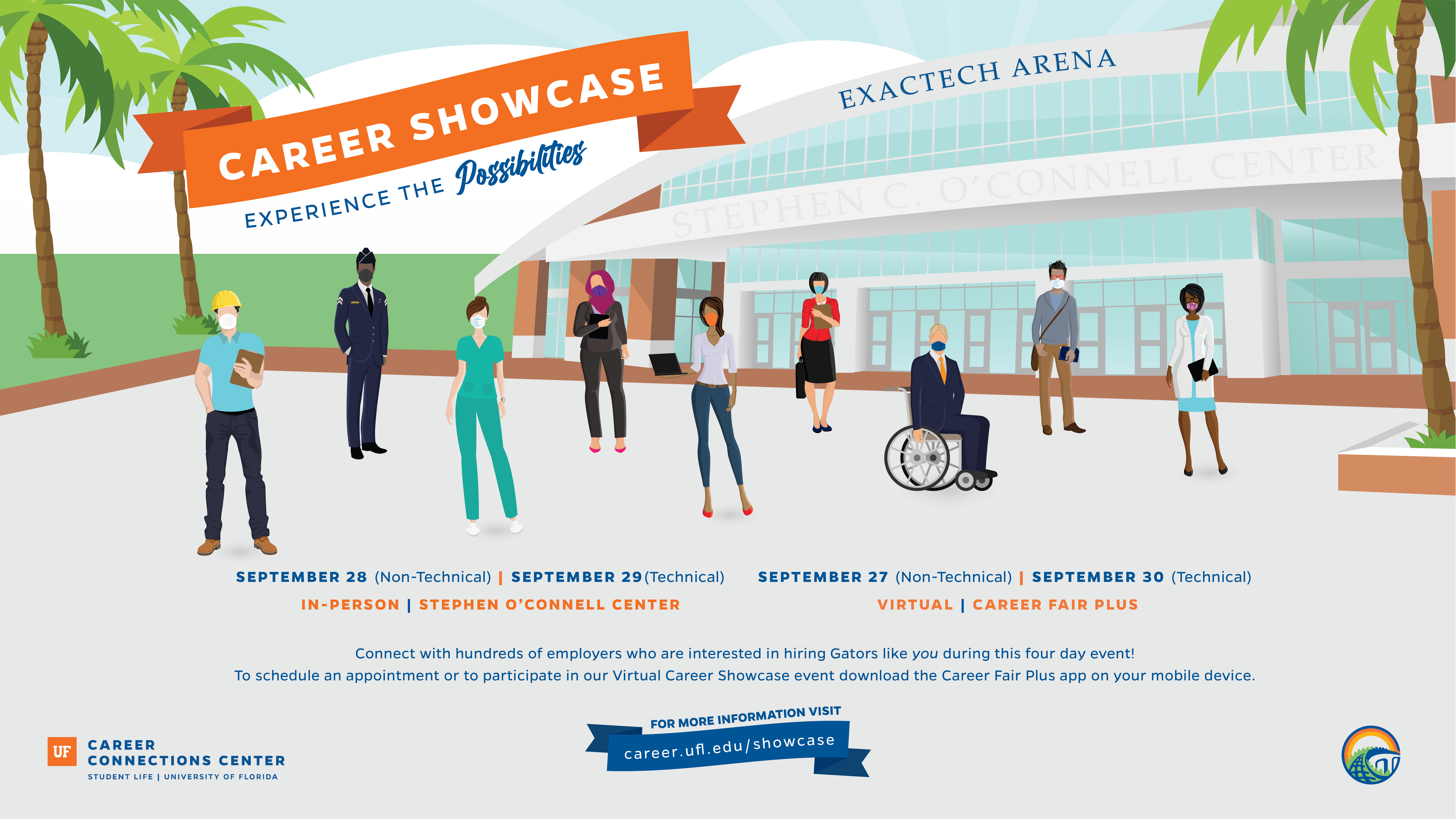 UF fall Career Showcase fair is the largest career fair in the Southeast. The below article includes links to employers attending this year’s fair. Keep in mind that COVID has impacted all career fairs, pushing a lot of employees to “virtual” fairs.