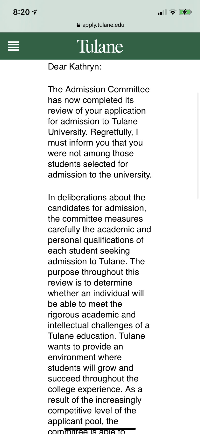 Wow I hope you get into Tulane. Tulane is in an incredibly fun city, diverse student group, amazing professors. You can never be bored in Nola!