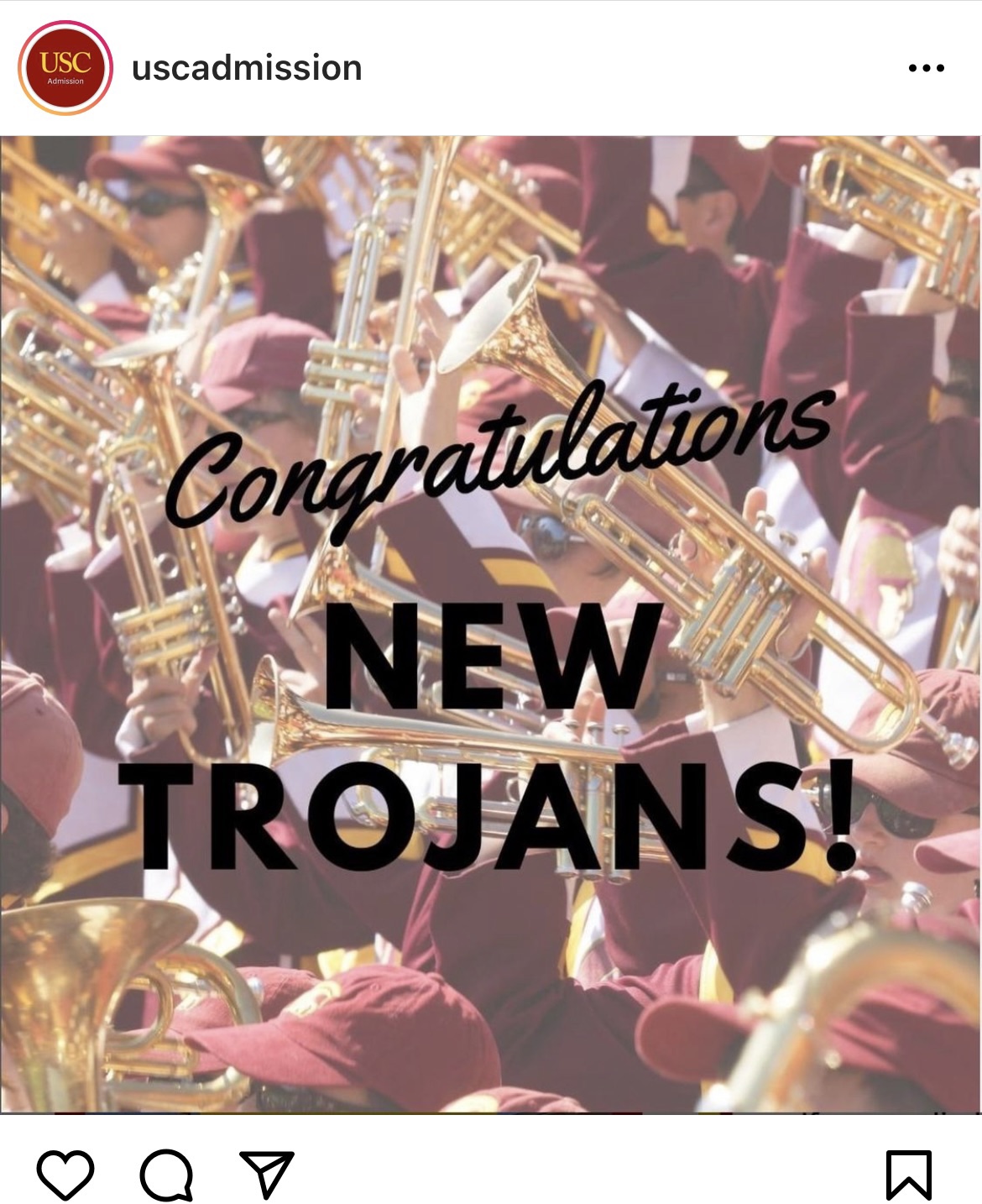 They just posted “Congrats to New Trojans” on their Instagram and deleted the post five minutes after